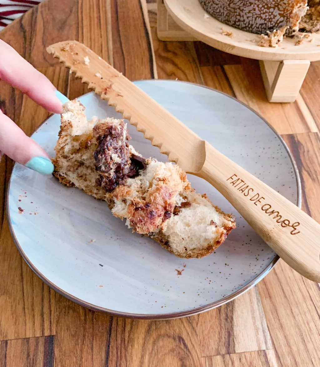Feita artesanalmente com bambu natural, é perfeita para cortar pães, bolos e tortas, além de compor um visual rústico e delicado no café da manhã e na sua mesa posta.