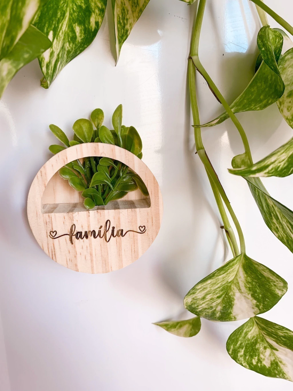 Material: Madeira Pinus e Planta verde