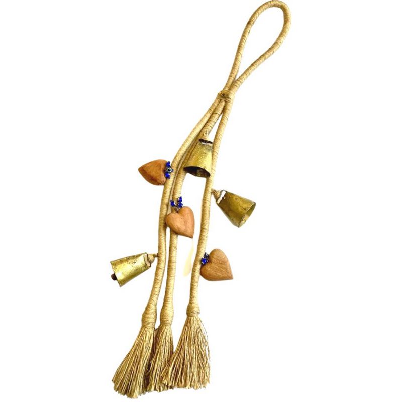 Pendente feito sisal, madeira, corda de algodão, metal e vidro; Na cor natural.